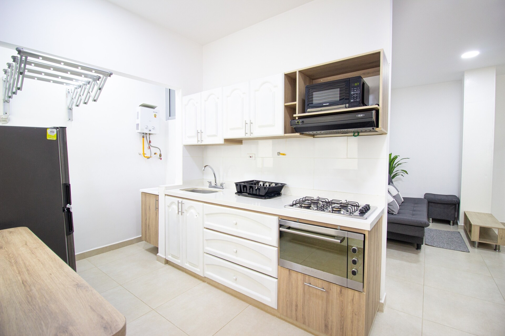 • Apartamento totalmente amoblado, moderno y espacioso. todo el espacio es solo para ti. Tienes acceso a la lavadora.